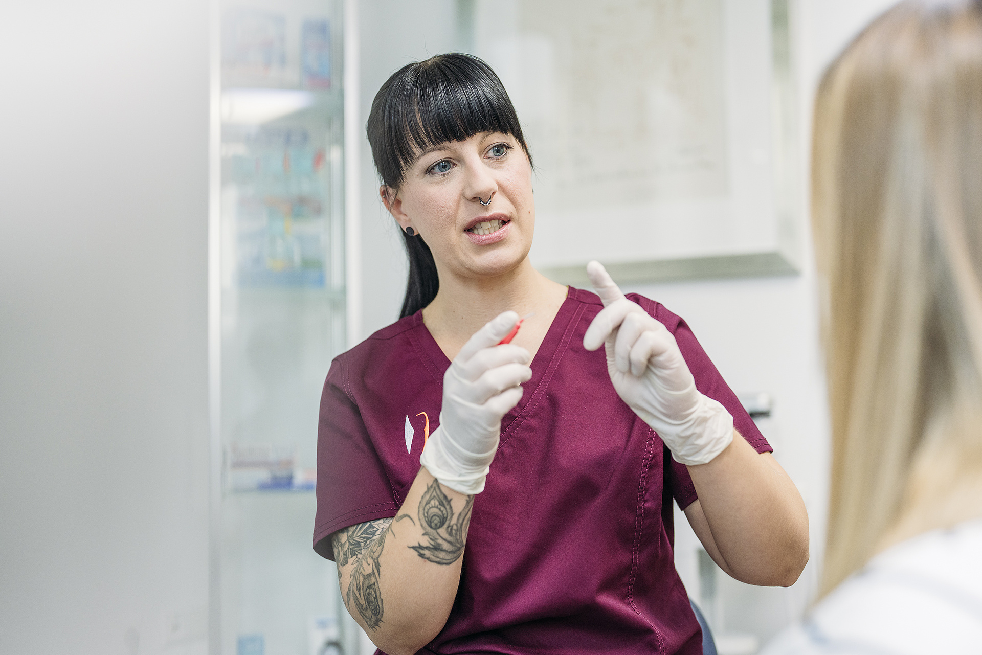 Mit konsequenter Pflege können Patient*innen die Entstehung von Bakterienbelägen deutlich reduzieren.